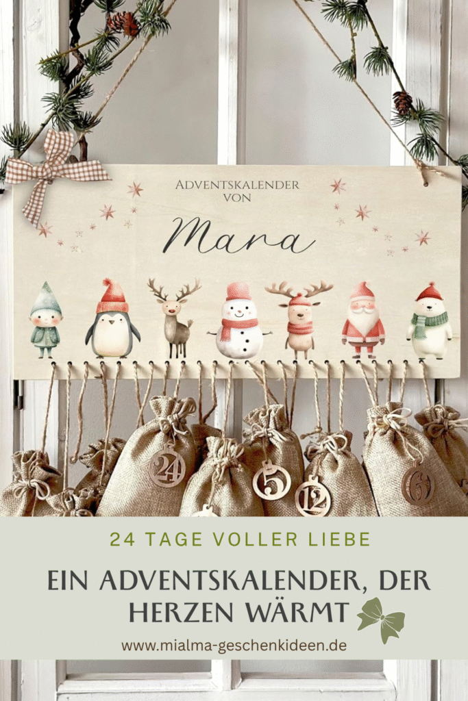 Rustikaler Adventskalender aus Jutesäckchen zum Selbstbefüllen – perfekt für kreative Geschenkideen, nachhaltige Überraschungen und einen persönlichen Touch in der Vorweihnachtszeit. Ideal für Kinder, Partner oder als dekoratives Highlight im Wohnzimmer. Entdecke diesen DIY-inspirierten Kalender und mach jeden Dezembertag zu etwas Besonderem.