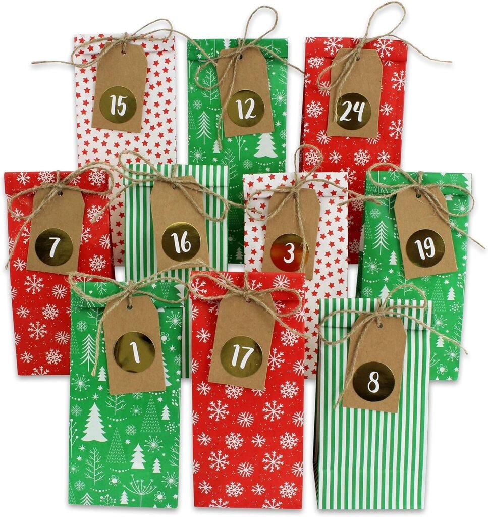 Papierkalender in klassischen Weihnachtsfarben Rot-Grün